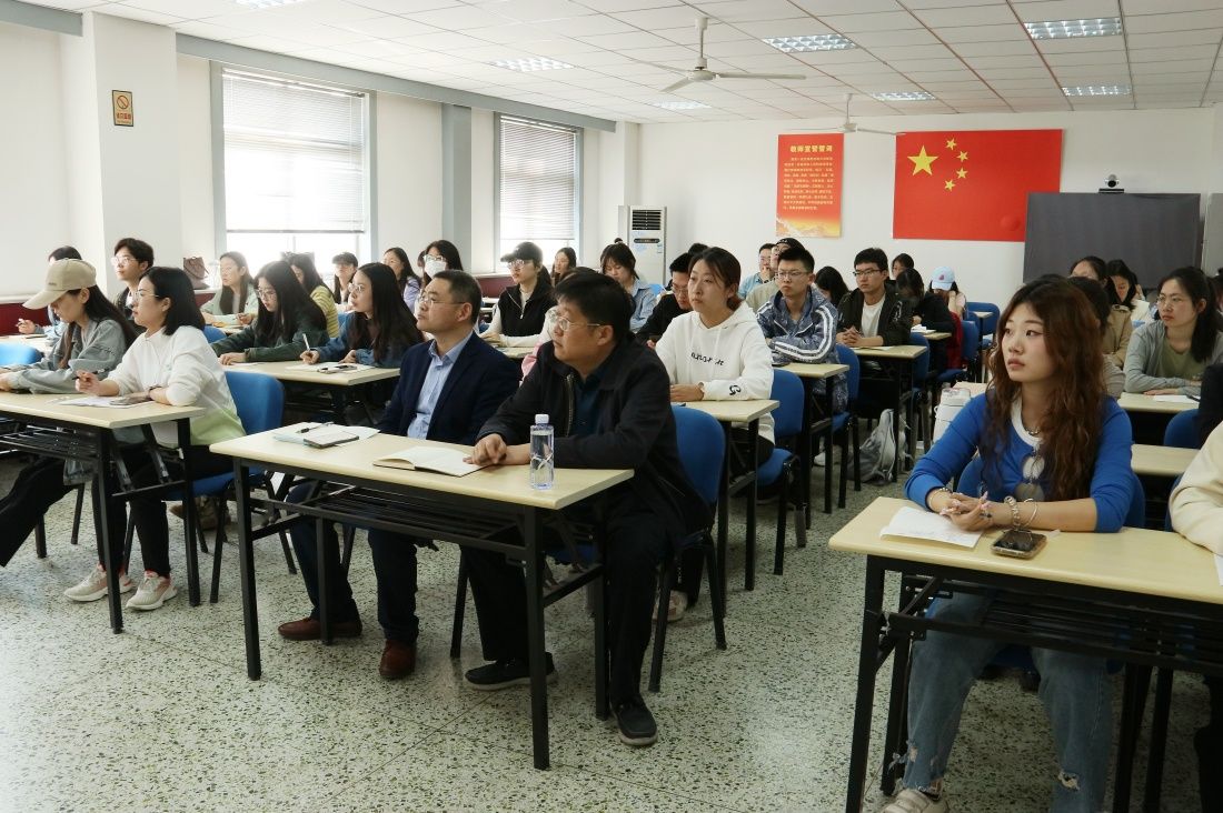 师生开展学术交流。他在报告中阐述了习近平文化思想的价值意蕴,从思想政治教育的培养定位、本质追溯、价值引领三个方面阐释了“时代新人”是党的教育方针的时代表达,详细讲述了思想政治教育的发展趋势和时代特质。