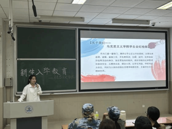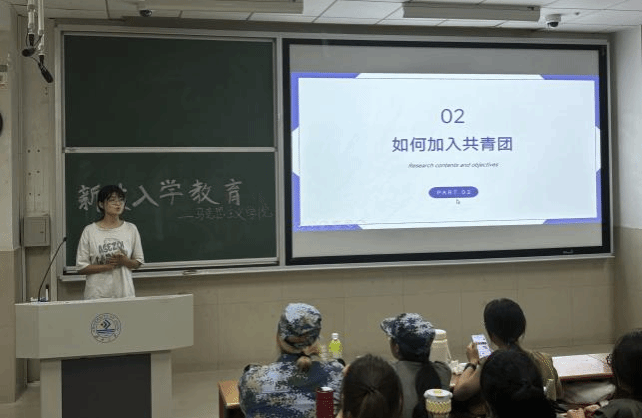 特别组织了国防教育,退伍大学生杨润泽学姐为新生详细解读了国家征兵政策、入伍条件、流程及相关优惠政策,并通过分享自己的军营生活和成长故事,激发了新生对军营生活的向往和参军意愿。