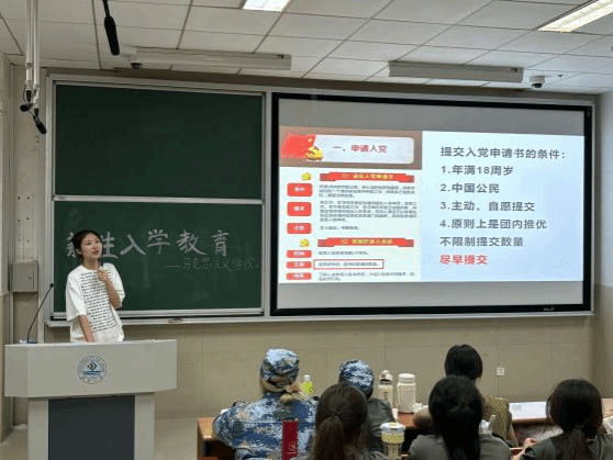 学生党支部负责同学为新生介绍组织发展的基本条件和流程,坚定了同学们今后加入党组织的决心,同时勉励同学们日后仍需不断地努力。