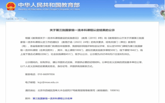 在近日发布的第三批国家一流本科课程公示名单中,澳门娱乐