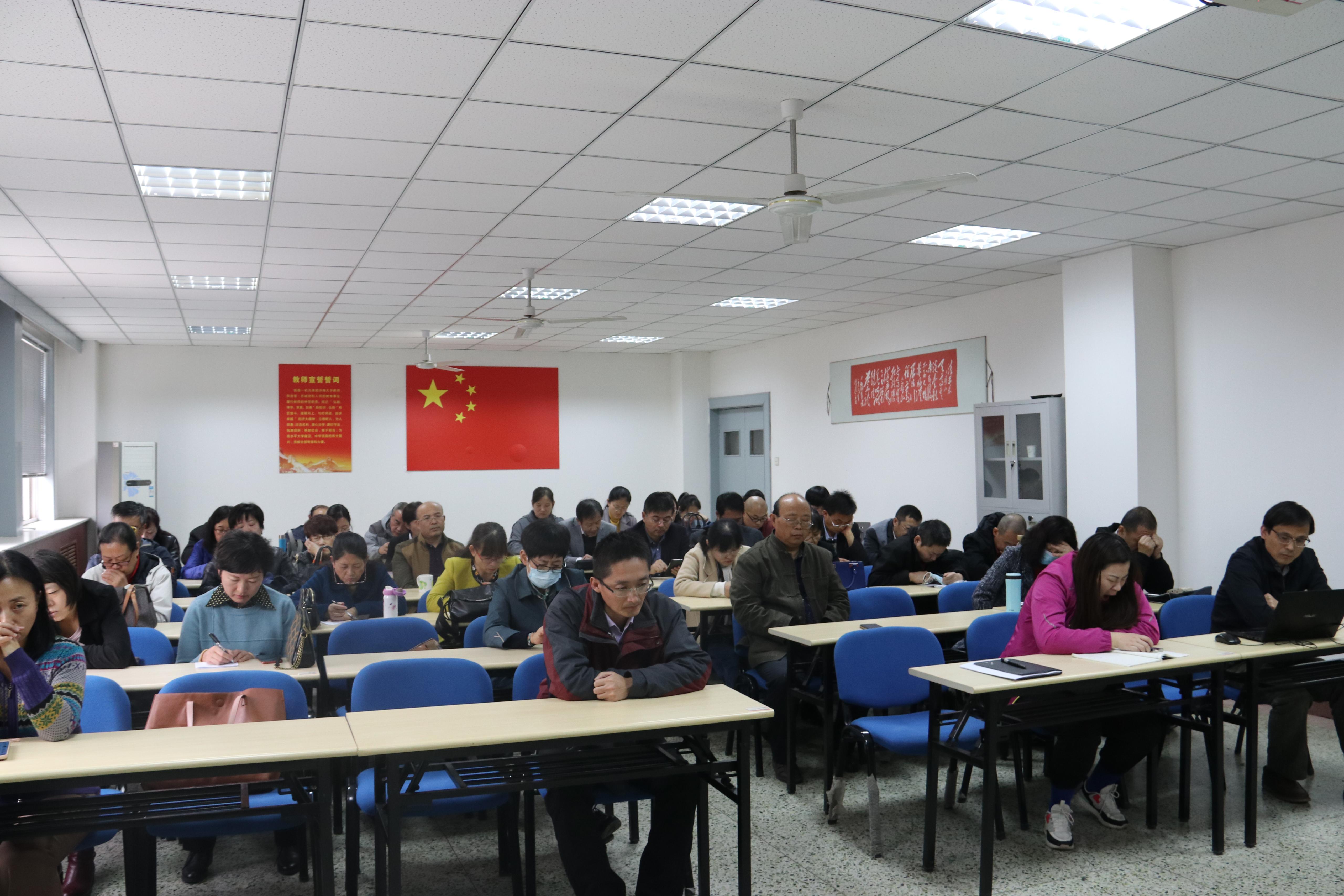 教师齐聚一堂,开展“加强师德师风建设 争做新时代‘四有’好老师”主题教育活动。