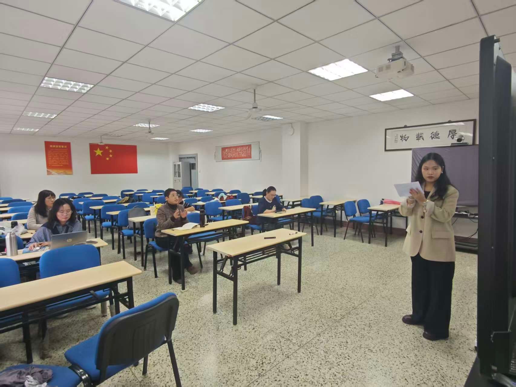 专家指导环节中,李霞、朱梅莹老师对参赛教师们的表现给予了充分肯定,并围绕教学设计、课程思政融入等多个维度,进行了深入细致的点评与交流,并提出了诸多富有建设性的改进建议。李霞老师指出,选题内容要连贯,具有一定的逻辑性,注意思政课的学理性。朱梅莹老师指出,教师应注重平时的积累,选取的例子要贴近学生生活,注重激发学生听讲的兴趣。两位老师的精准指导为参赛教师优化课程设计、创新教学方法提供了明确方向。同时,参会教师围绕教学创新成果报告撰写、参赛组别选择、课堂教学实录等问题展开热烈研讨。