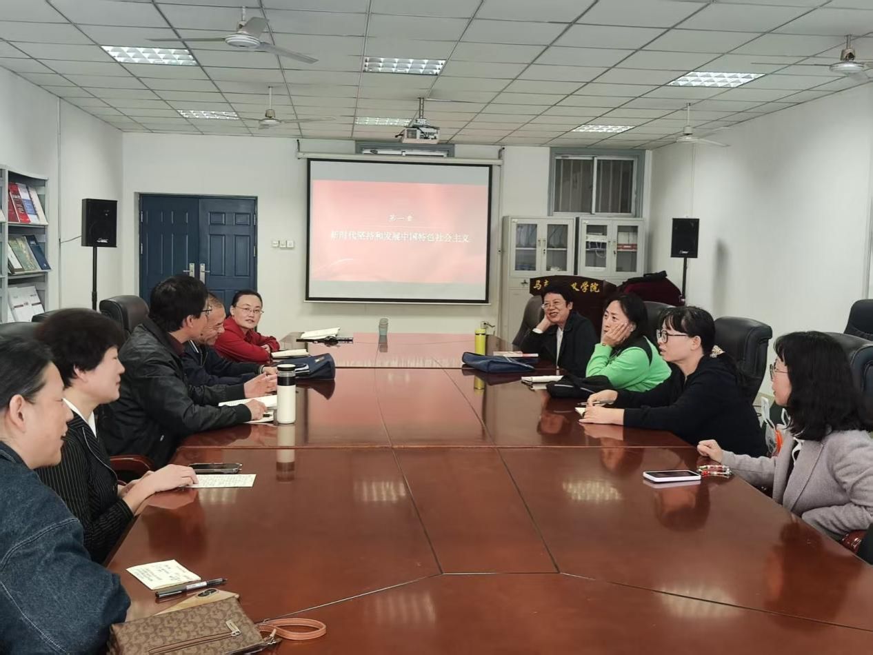 首先,牛秋业教授以“理论溯源—内涵解读—实践指引”为主线,围绕“为什么我们要坚定不移地坚持中国特色社会主义”“中国特色社会主义在新时代的内涵、重大意义和依据”“新时代怎么样去坚持和发展中国特色社会主义”三个核心教学问题展开系统讲解。他结合教材体系与最新理论成果,深入阐释了新时代坚持和发展中国特色社会主义的总任务、总体布局、战略布局等关键内容,清晰梳理了“中国之治”的制度优势与实践路径,构建了“理论+案例+互动”三位一体的教学框架,既突出了政治性与学理性的统一,又兼顾了教学的针对性与实效性。 随后,参与备课的老师们围绕教学设计展开热烈研讨。徐文文副院长强调,第一章作为课程的开篇基础,必须牢牢把握“凝心铸魂”的核心目标,既要夯实理论根基,又要结合新时代伟大变革的鲜活案例,让学生直观感受理论的实践伟力,同时明确了新学期专题备课需强化“大思政”育人理念、推进教学守正创新的具体要求。夏晓丽老师建议,教学中应增加地方发展实践案例,将国家战略与区域发展相结合,增强学生的代入感与认同感;刘鹏老师提出,要进一步优化教学逻辑,通过思维导图、情景模拟等方式,帮助学生厘清理论脉络,深化对“五位一体”“四个全面”等重大部署的理解;李芳云老师则强调,要注重挖掘红色资源与实践教学基地的育人价值,通过“场馆思政课”“实践调研”等形式,让理论教学走出课堂、贴近现实。老师们各抒己见、充分交流,在思想碰撞中努力在教学改革创新上下功夫,增强思政课教学的有效供给,提升高校思政课教学的针对性和亲和力。 通过此次集体备课,不仅系统优化了“新时代坚持和发展中国特色社会主义”章节的教学方案,明确了教学重点与创新路径,更强化了教师对党的创新理论的系统把握与教学转化能力。下一步,教研部将继续聚焦立德树人根本任务,推动教学成果落地见效,助力学生深刻领悟新时代中国特色社会主义的理论魅力与实践力量,引导青年学生坚定“四个自信”、担当时代使命,为培养担当民族复兴大任的时代新人筑牢思想根基。