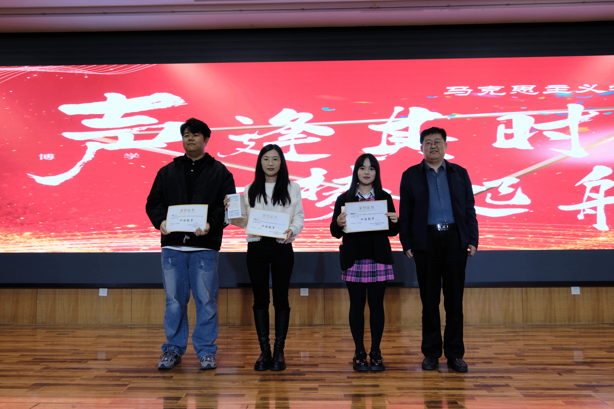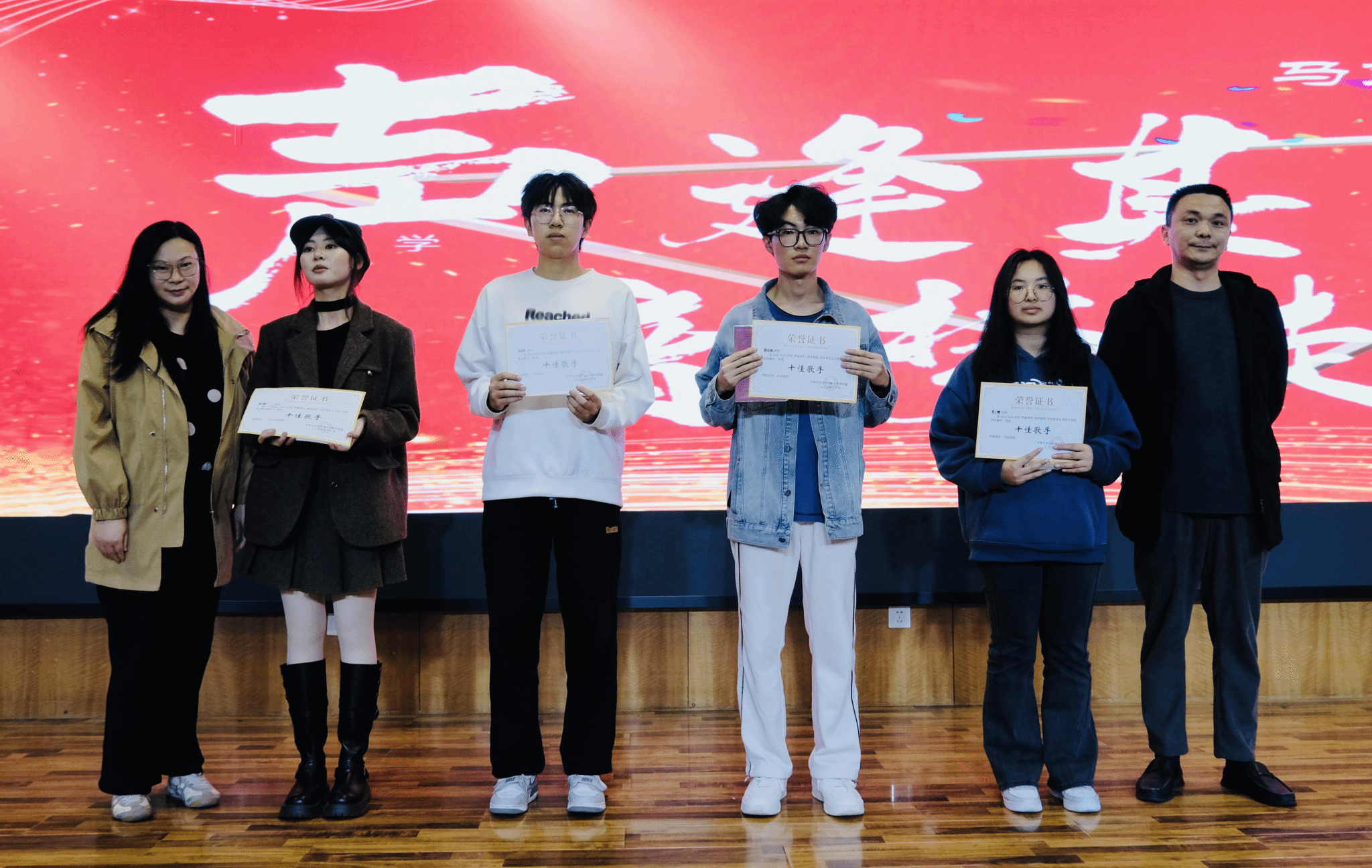 动感的旋律,轻快的舞步,开场舞《Ringo》的舞蹈演员们用他们的热情和活力点燃整个现场。随着最后一个音符落下,十佳歌手比赛拉开帷幕。在舞台上,无论是激昂的摇滚,还是温柔的民谣,每一首歌都承载着青春的故事,每一句歌词都诉说着对生活的热爱与追求。这不仅是音乐的交流,更是心灵的碰撞,让观众们在音乐的海洋中遨游,感受艺术的力量,体验生命的激情。这是一场音乐的盛宴,是青春的赞歌,让每一位学子在悠扬旋律中找寻到自我,绽放出独特的光芒。