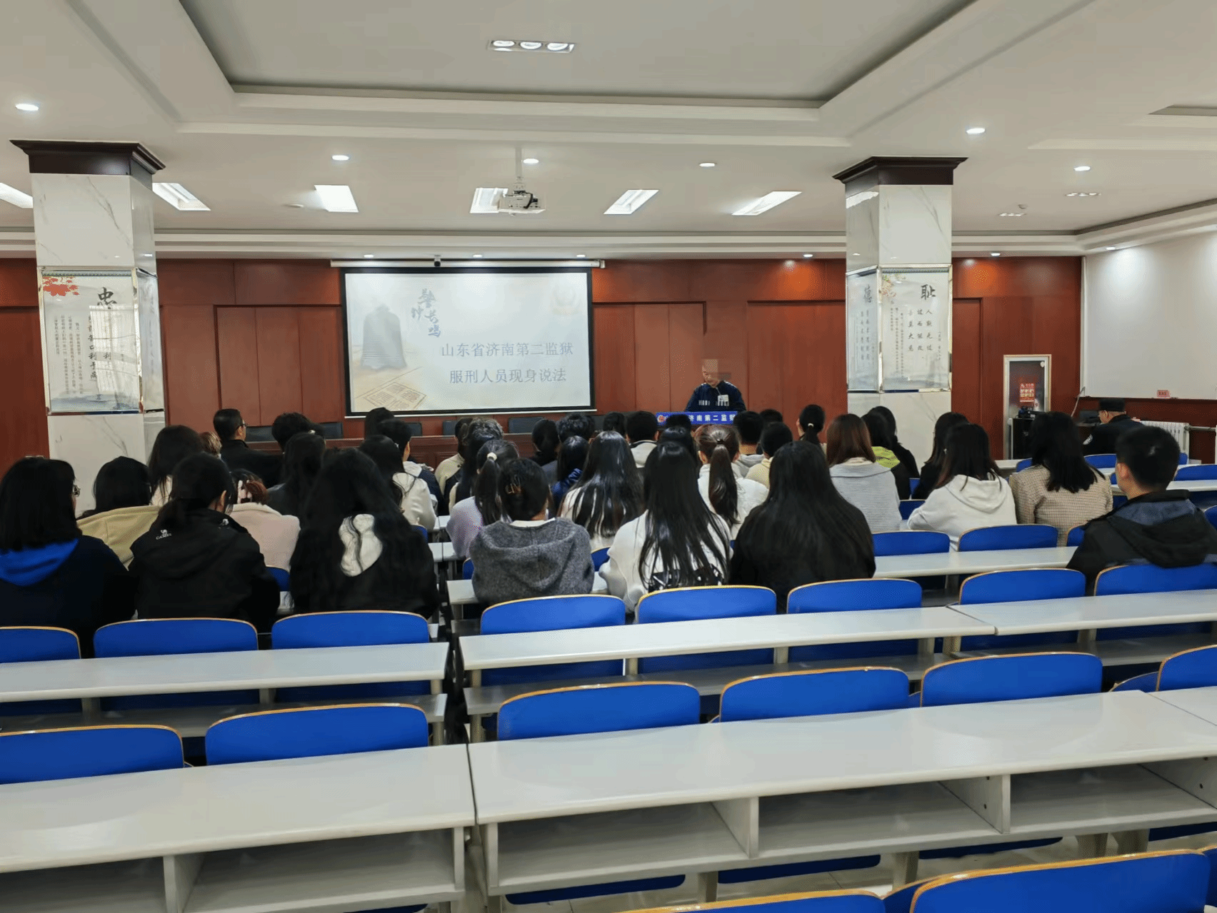 学生管理办公室主任陈婧、全体研究生及本科生代表前往济南第二监狱开展警示教育活动。