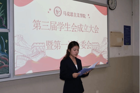 第三届学生会成立大会暨第一次全体委员会于2025年10月24日顺利召开。新一届学生会主席团、部长团及全体干事齐聚现场,共同见证这一重要时刻,会议由青年发展部部长胡佳馨主持。