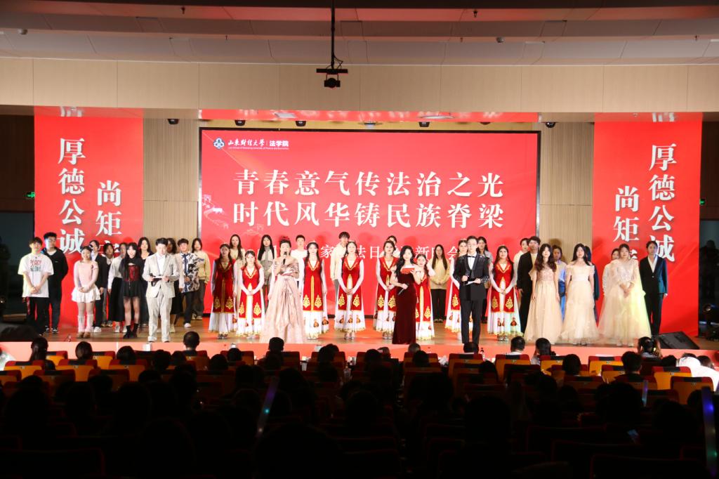 学子对国家法治建设的坚定信念。舞蹈《小河淌水》以抗美援朝那段波澜壮阔的历史为背景,同学们以灵动的身姿和坚定的步伐,化身为那段峥嵘岁月中的英勇战士,将那段历史中的坚韧不拔、英勇无畏以及深厚的家国情怀,淋漓尽致地展现在观众眼前。沙林斌携手全体辅导员老师共同演唱《像你这样的朋友》点燃全场,积极向上的歌曲与震耳欲聋的喝彩欢呼声融汇一起。最后,晚会在节目《相亲相爱》那温馨动人的舞蹈与悠扬歌声中,缓缓落下了帷幕,为这场盛大的晚会画上了一个完美而圆满的句号。
