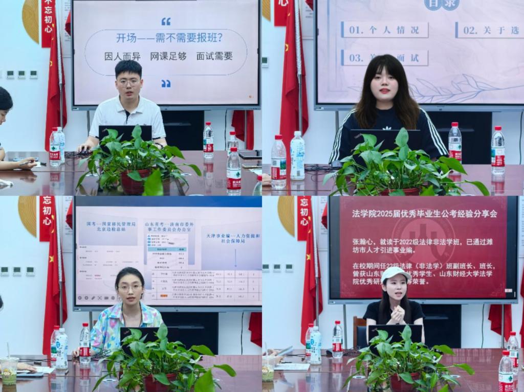 辅导员高蕾和四位2025届优秀毕业生,分别从法学专业研究生就业形势分析、岗位选择以及公务员、选调生、人才引进等岗位的备考经验进行分享。澳门娱乐