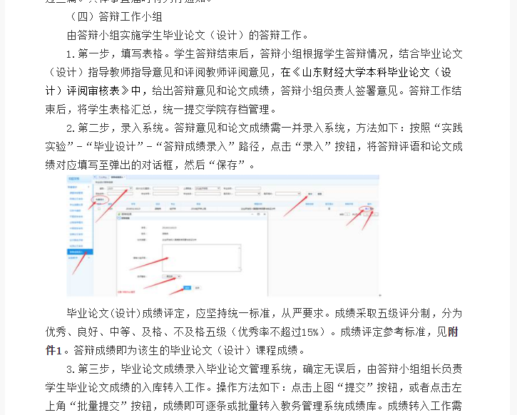 7、答辩结束后,答辩组长请于5月20日22点前在强智系统及时填写答辩结论和本组学生的答辩成绩(五级制),以免影响毕业资格审核;点击“提交”按钮,或者点击左上角“批量提交”按钮,将答辩成绩逐条或批量转入教务管理系统成绩库。