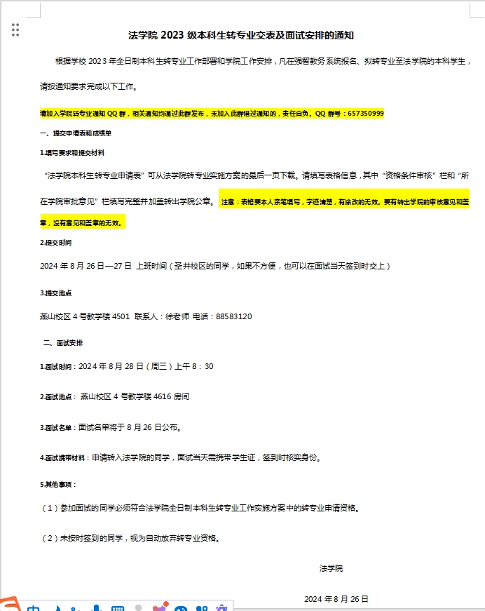 澳门娱乐 2023级本科生转专业面试及交表安排