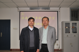 李朋忠工作室负责人李朋忠老师汇报了工作室的基本情况。李朋忠老师介绍了工作室成立的背景、成立的目的、成立以来的主要工作以及下步工作目标。