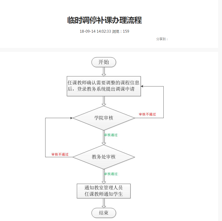 长批准,然后在强智教务系统(详见附件的操作说明)提出调课申请,找教学秘书审批。同时,请任课老师及时告知学生补课时间和地点。 附件1: 见教师个人强智系统公告留言的“临时调停补课操作说明”(如图所示)