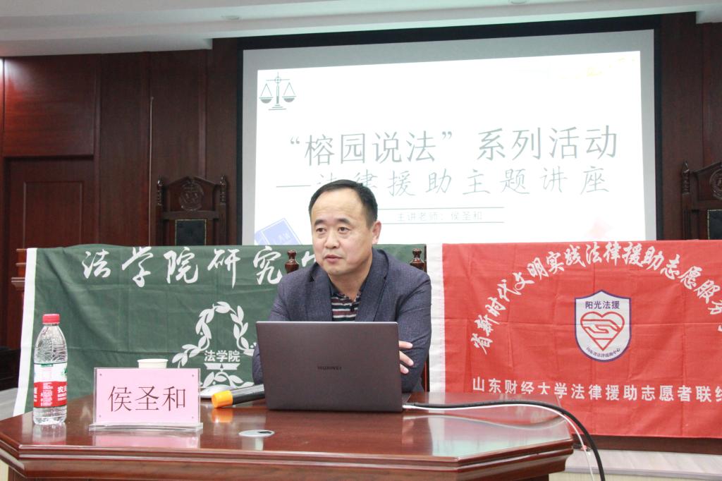 侯圣和老师在四号楼模拟法庭举行了以法律援助为主要内容的专题讲座。
