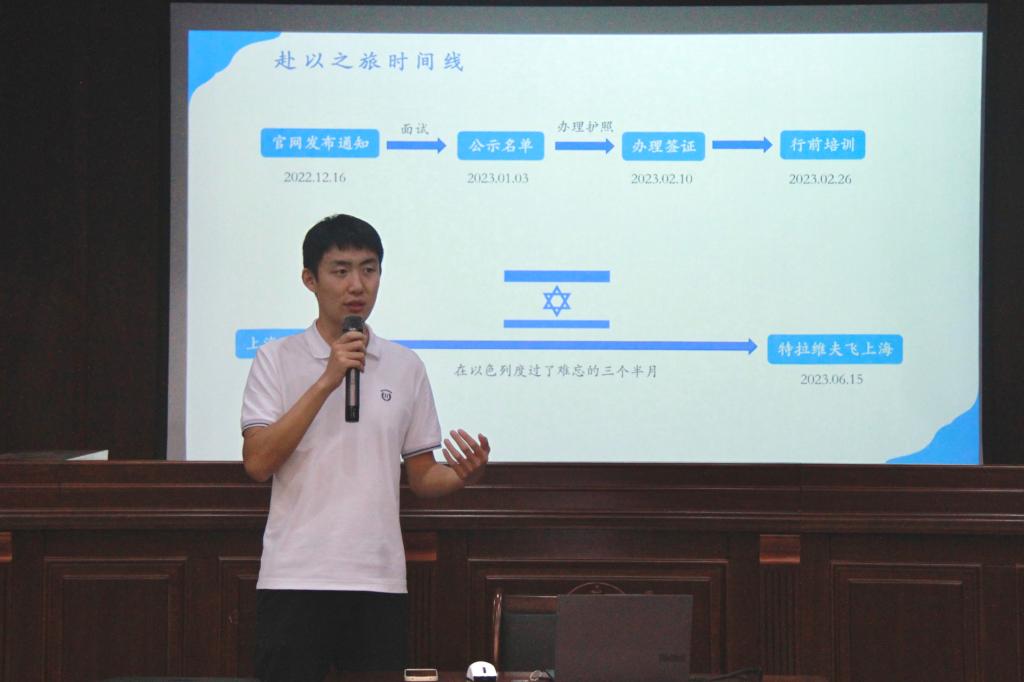 交流会上,王阳同学首先就他在以色列访学的基本情况进行介绍,包括项目申请流程、以色列地理位置概况、访学澳门娱乐