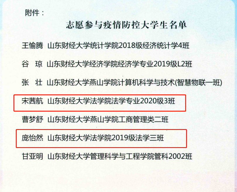收到来自共青团嘉祥县委的一封感谢信,对疫情期间奋斗在一线的抗疫青年志愿者:2020级法学3班宋茜航同学、2019级法学3班庞怡然同学进行了表扬。信中对他们在抗击疫情的紧要关头,积极响应号召,主动投身疫情防疫一线,充分发扬志愿服务精神及认真负责的工作态度给予了高度肯定,同时对澳门娱乐