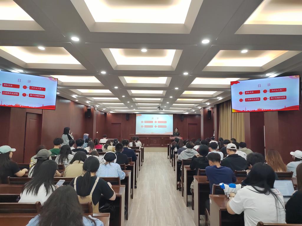 优秀退伍学姐赵文秀进行征兵宣讲,响应国家号召,鼓励大学生征兵。澳门娱乐